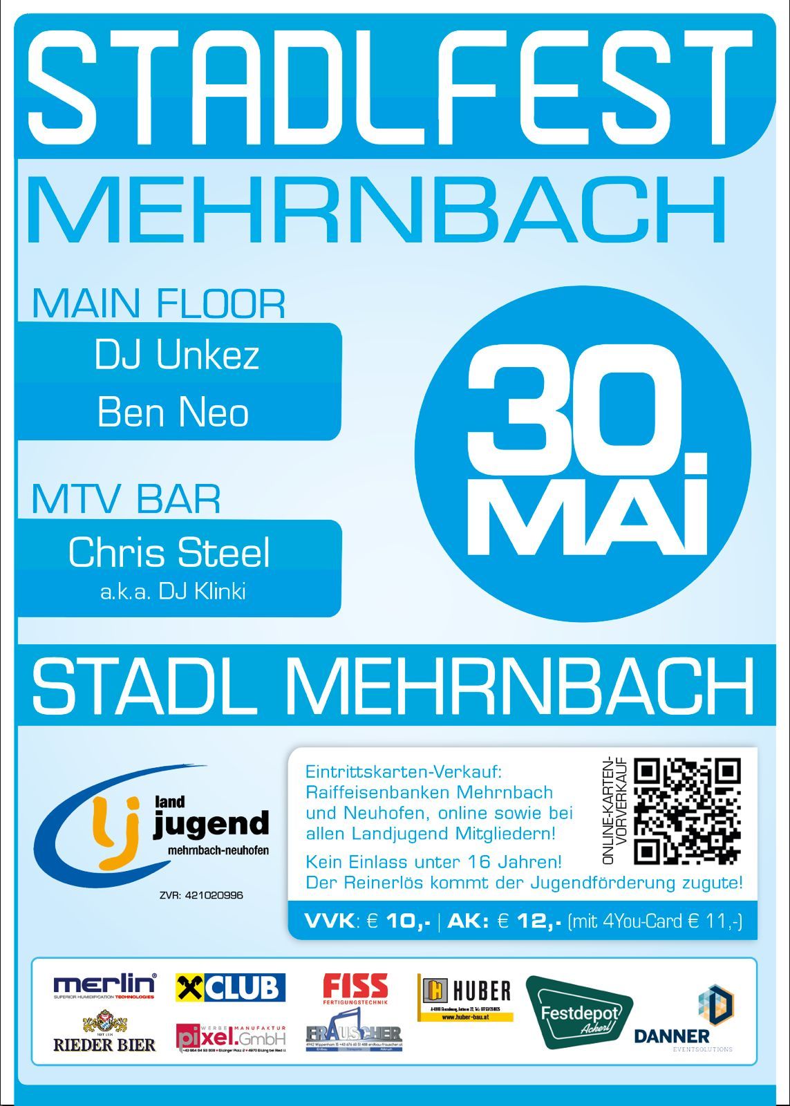 Karten online kaufen. Vorverkauf vom 23.02.2026 bis 29.05.2026 Tickets für Stadlfest MehrnbachGemeindestadl MehrnbachEinlass 21:00 Uhr